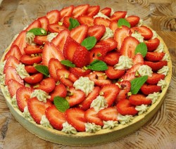 Régis Pondaven Read moreTarte aux fraises, chiboust pistache et pâte sablée amande