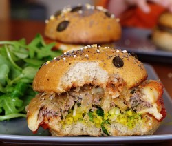 Un hamburger version slow-food, avec une sauce très acidulée aux légumes croquants qui donne du ...