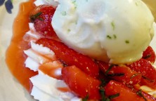 Réaliser un caramel blond avec les 100g de sucre restants, puis y verser l’eau aromatisée à la badiane, faire réchauffer jusqu’à bonne dissolution du caramel. Ajouter alors 2 feuilles de gélatine et laisser refroidir avant de verser dans les cercles et laisser encore quelques heures au frais.