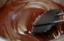 Mélanger pour le faire fondre, en surveillant la température qui doit redescendre à 28/29°. Ajouter alors progressivement le chocolat réservé au four en surveillant la remontée de température qui doit atteindre 31/32°.
