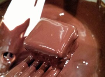 Le chocolat noir va enrober les bonbons, il ne suffit pas de le faire fondre, il devra subir un cycle de fonte / refroidissement / réchauffage pour donner un résultat satisfaisant. C’est le tempérage.