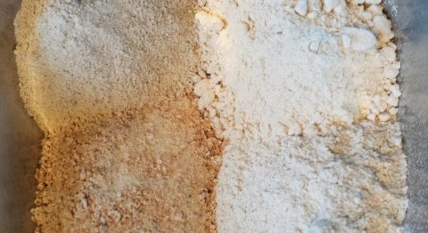 - 140g de farine (mélange à parts égales de sarrasin, seigle, chataigne et blé intégral)