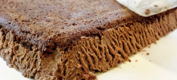 Le lendemain, démouler et couper en 2. Remettre le fond dans le plat, la feuille de papier reste en dessous.