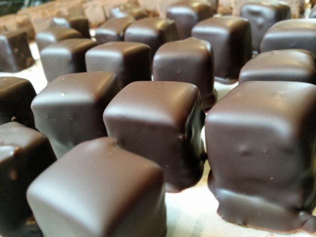 Certes, ça prend un peu de temps, mais avec une soixantaine de chocolats, la production est assez conséquente 🙂